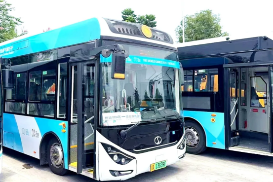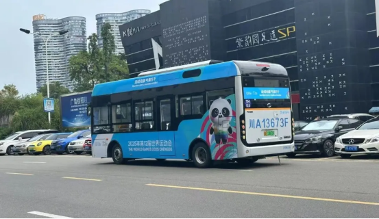 为践行成都世运会绿色低碳办赛理念,这批氢能公交车通过“氢”和“氧”的电化学反应产生电能从而驱动车辆,全程只产生水,真正实现零排放